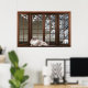 Poster Illusion de la baie vitrée avec chat sur l'affiche