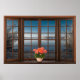 Poster Illusion de la baie vitrée avec des fleurs sur le