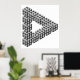 Cette affiche présente une illusion d'optique triangulaire impossible, faite de cubes gris. La couleur de l'arrière - plan peut être changée si vous le souhaitez.