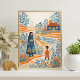 Cette charmante illustration de style folk capture un moment paisible entre une mère et son enfant marchant le long d'un chemin sinueux à travers un paysage campagnard en fleurs. Entourée de fleurs délicates, de collines douces et d'une maisonnette confortable brillant au loin, l'œuvre d'art évoque la chaleur, l'amour et la beauté tranquille de simples moments familiaux.