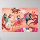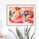 Illustration de conte de fées magique rose fées et ours dragons pour décorer une chambre d'enfants