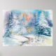 Poster Illustration du paysage d'hiver de l'aquarelle