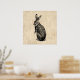 Poster Illustration lapin antique avec script