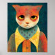 Poster Illustration Portrait D'Un Triste Chat Ginger
