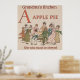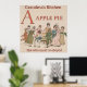 Illustration Retro Childrens. A pour la tarte aux pommes. Texte modifiable. Idéal pour une cuisine. Poster physique ou téléchargement numérique