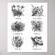 Affiche illustrant la botanique. Dessins de fleurs vintages en noir. Un cadeau parfait pour les amoureux plante et les passionnés de jardinier.