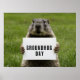 Image du jour de la marmotte : Marmotte de terre tenant une carte blanche pour les messages personnalisés. Célébrez la Journée de la marmotte avec cette charmante illustration montrant un marmotte tenant une carte blanche vierge.