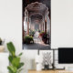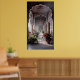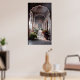 Passage of Serenity” captures the timeless beauty and tranquil atmosphere of an Indian architectural corridor bathed in soft golden light. Ornate arches adorned with intricate floral motifs frame a walkway lined with potted plants and blossoming flowers, leading the eye toward a lush garden beyond. The warm sunlight filters gently through the carved pillars, casting elegant shadows across the terracotta tiles. This artwork evokes a sense of peace, history, and quiet reflection — a perfect balance of nature and craftsmanship that invites viewers to pause and breathe in the calm of this sacred space.