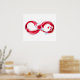 Infinity symbole of continuous stream of red pouring into glass glass glass on white background.