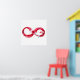 Infinity symbole of continuous stream of red pouring into glass glass glass on white background.