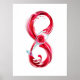 Infinity symbole of continuous stream of red pouring into glass glass glass on white background.