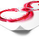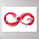 Infinity symbole of continuous stream of red pouring into glass glass glass on white background.