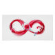 Infinity symbole of continuous stream of red pouring into glass glass glass on white background.