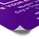 affiche carré que vous pouvez customiser et afficher sur le mur de votre bureau, de votre entrée ou dans des endroits appropriés visibles à vos clients ou clients pour annoncer votre entreprise ou promouvoir votre marque. Customisez-le pour sensibiliser la marque. La couleur est violette et les couleurs de police sont roses et blanches. Pour customiser cette affiche, téléchargez votre logo d'entreprise, tapez votre nom d'entreprise ou d'entreprise, votre adresse, votre numéro de téléphone, votre courriel et votre site Web ou votre page de médias sociaux. Veuillez vérifier l'apparence après avoir téléchargé le logo et tapé des textes. Si l'apparence vous plaît, vous pouvez passer votre commande maintenant. Si vous avez besoin de redimensionner et déplacer le logo et les textes pour s'adapter à cette affiche ou à d'autres formes et tailles que vous choisirez, veuillez modifier l'outil de conception. Vous pouvez également effectuer d'autres modifications en fonction de vos préférences dans l'outil de conception, comme changer la couleur de l'affiche, la couleur de la police et le style de police.