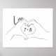 Poster Initiales monogrammes Love Heart Line Art Dessin