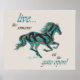 Éclairez votre maison avec cette unique affiche hippique "One Of A Kind". Il comprend une Silhouette de Cheval Galloping en Turquoise, Noir & Or et les mots inspirants..."VIVRE COMME QUELQU'UN A LAISSÉ LA PORTE OUVERTE"! Il s'agit d'un graphisme original créé par l'artiste Kerry Miller.