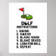 Instruction de golf Swing Swear at flag hole on green Luggage Tag 1. Coudre 2. Jure 3. Blame Noise 4. Herbe de la faute 5. Cherchez la balle 6. Recommencer
