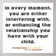 Ceci est une petite affiche murale pour rappeler aux parents que chaque interaction est importante pour l'indépendance de votre enfant.