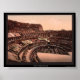 A beautiful, one-of-a-kind photochrom print of the Interior of the Roman Coliseum in Rome, Italy. The photochrom process was one of the earliest efforts at bringing color to photography. It used high quality color inks which were laid down on paper with multiple lithographic stones, creating a beautiful hand-colored rendering. An application of a varnish coat gave the print a lustrous quality and added a depth and richness often found in more modern color photographs. These factors contributed to a unique and distinct print quality. This print would make an excellent gift for a friend, family member, or co-worker, or wall hanging for your private collection. It beckons a deep appreciation and warmness of times gone by.