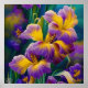 Poster Iris Floral Violet et bleu or feuilles