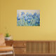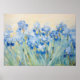 Cette jolie oeuvre impressionniste abstraite présente des iris bleus sur un arrière - plan jaune pâle. L'effet est doux, paisible et beau.