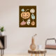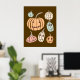 Ajoutez des couleurs automne ou automne à vos murs avec cette adorable affiche. Il présente des illustrations simples de citrouilles en orange, vert menthe pâle, jaune pâle et rose avec des tiges de couleur bronzée et de mignons yeux bruns foncés avec des sourires jagués style cousus.