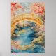 Poster Japanese-style arched bridge spans a tranquil rive