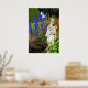 Poster Jardin de delphinium bleu et statue de déesse grec
