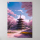 La pagode en bois se dresse au milieu d'un beau jardin coloré, avec des fleurs roses et jaunes formant un premier plan vibrant et coloré. Les magnifiques sakura apportent une touche d'élégance et de charme, créant une atmosphère vraiment enchanteresse. Parfait pour tous ceux qui aiment la nature et l'art, cette affiche ajoutera une touche de beauté et d'élégance à tout espace de vie.