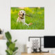 Poster Jaune Labrador Joue Récupérer Avec Bâton