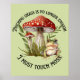 Aquarelle illustration d'une grenouille et des champignons avec le texte "Toucher l'herbe n'est plus suffisant. Je dois toucher la mousse."