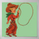 Belle illustration rétro d'un petit garçon en cowboy en train de tourner un lasso