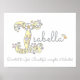 Joli poster avec monogramme parfait pour la chambre ou la salle de jeux d'une fille dans des nuances de gris, blanc, jaune, rose et violet. Personnalisez avec le propre nom de votre enfant commençant par J, et la signification du nom pour un cadeau vraiment personnalisé et unique pour la chambre ou la nurserie de votre enfant, cet exemple est pour le nom I Isabella Dévoué à Dieu. Beau, énergique et talentueux. Jolie impression idéale pour un nouveau-né, un cadeau de baptême ou de shower de bébé. © Dessin unique de cœurs et de fleurs avec monogramme lettre I et conception graphique par Sarah Trett. www.sarahtrett.com pour www.mylittleeden.com