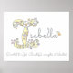 Joli poster avec monogramme I, parfait pour la chambre ou la salle de jeux d'une fille dans des tons de gris, blanc, jaune, rose et violet. Personnalisez avec le nom de votre enfant commençant par J, et la signification du nom pour un cadeau unique et vraiment personnalisé pour la chambre ou la nurserie de votre enfant, cet exemple est pour le nom I Isabella Dévouée à Dieu. Beau, énergique et talentueux. Jolie impression idéale pour un nouveau-né, un cadeau de baptême ou de baby shower. © Unique dessin de cœurs et de fleurs avec monogramme I et conception graphique par Sarah Trett. www.sarahtrett.com pour www.mylittleeden.com
