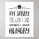 Pour le mur de la cuisine, "Je suis désolé pour ce que j'ai dit quand j'avais faim." Mettez cette citation de typographie sur votre mur. Je suis super crabe quand j'ai faim, donc cette citation a beaucoup d'utilité dans ma maison.
