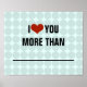 C'est un cadeau si amusant pour vos proches ! Encadrez-le, et utilisez un marqueur d'effacement sec sur le verre pour écrire dans toutes sortes de messages amusants "Je t'aime plus que..." ! Accrochez-le dans la cuisine, la salle de bain ou les chambres et découvrez à quel point votre famille s'amuse à participer à cet art interactif. Choisissez "customisez-le" pour choisir votre propre couleur arrière - plan ou les styles et couleurs de police pour correspondre à votre propre décor.