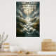 Jean 1:1 Au commencement était la Parole, et la Parole était avec Dieu, et la Parole était Dieu. Une scène dramatique et éthérée. Au centre, une croix est haute au milieu d'une mer d'eaux turbulentes, avec une lumière éclatante qui s'en dégage. En s'élevant des eaux, une figure aux bras tendus semble atteindre la croix. Le ciel au-dessus est rempli de nuages colossaux, illuminés par une lumière douce et dorée, créant un contraste avec les eaux plus sombres et orageuses en dessous. L'humeur générale de l'image est celle de l'espoir, de la rédemption et de l'intervention divine.