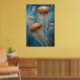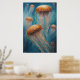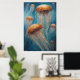 Poster portrait HD style oil painting illustrating some Jellyfish swimming in the ocean waters