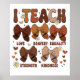 Poster I Teach Bows L'image contient le texte "I TEACH" en haut, avec chaque lettre dans une nuance différente de brun. Il y a deux marguerites et plusieurs formes de coeur autour du texte. Sous le texte, il y a six arcs, chacun dans des tons marron différents, avec un coeur au centre de chaque arc. Chaque arc est étiqueté avec un mot en dessous.
