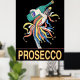 Poster Jester vintage avec bouteille Prosecco,