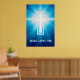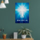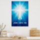 JÉSUS VOUS AIME - Elégante affiche avec croix blanche sur arrière - plan bleu illumination.