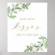 Affiche de jeu Combien de baisers Fleurs et verdure à l'aquarelle | Affiche 'Combien de baisers ?' avec des illustrations à l'aquarelle de fleurs blanches et de verdure avec un script élégant en or. Jeu de douche amusant et élégant, parfait pour les douches de mariage printanières et les douches bébé. Les articles assortis sont disponibles.