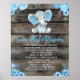 Rustic Blue Floral Boy Elephant Late Night Diapers Baby shower Poster de jeu avec arrière - plan en bois et texte personnalisable.