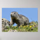 Jeune marmotte alpine (Marmota marmota) sur le ciel bleu arrière - plan, dans les Alpes françaises, département savoyard à La Plagne