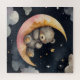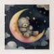 A dreamy watercolor illustration of a sleepy grey bear resting on a crescent moon, surrounded by stars in a soft night sky. Perfect for nursery decor, children's gifts, and anyone who loves adorable animal art with a calming night-time theme. Ideal for cozy home accents or baby room decorations.