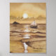 Une scène océanique sereine dans les tons or.