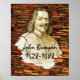 Poster de M. John Bunyan, pasteur anglais, puritain et martyr du XVIIe siècle. Auteur du Progrès du Pèlerin. Emprisonné de 1660-1672 sous le Code Clarendon du roi Charles II pour avoir prêché l'évangile sans licence de l'Eglise d'Angleterre. Oeuvre originale de Jon Cardwell.