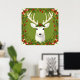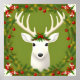 Illustration détaillée d'un cerf aux bois de bois dans un paysage serein et enneigé avec verdure et champignons.