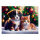Cette affiche a été conçue pour la saison des fêtes. Le design montre un mignon chiot et un chaton sous le sapin de Noël en vintage style. Chiot à fourrure noire et blanche, chou à fourrure rouge et blanche. Super mignon pour les amoureux des animaux de compagnie et tous les enfants!