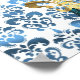 Un paon bleu et des papillons assez moderne design graphique sur un motif vintage damassé.